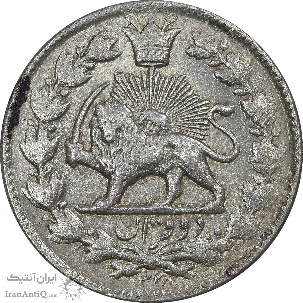 iran 2 krans 1328 coin - AU55 - ahmad shah