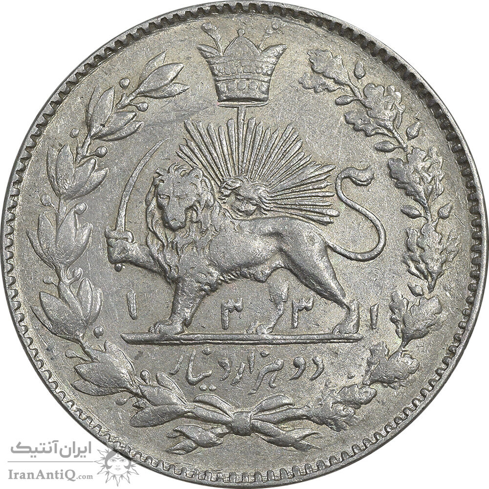 iran 2000 dinars 1331 coin - AU53 - ahmad shah