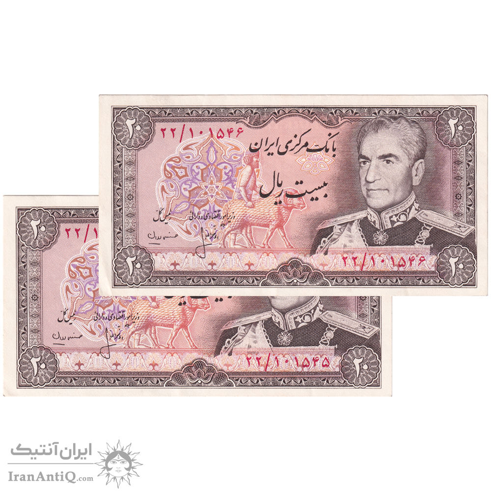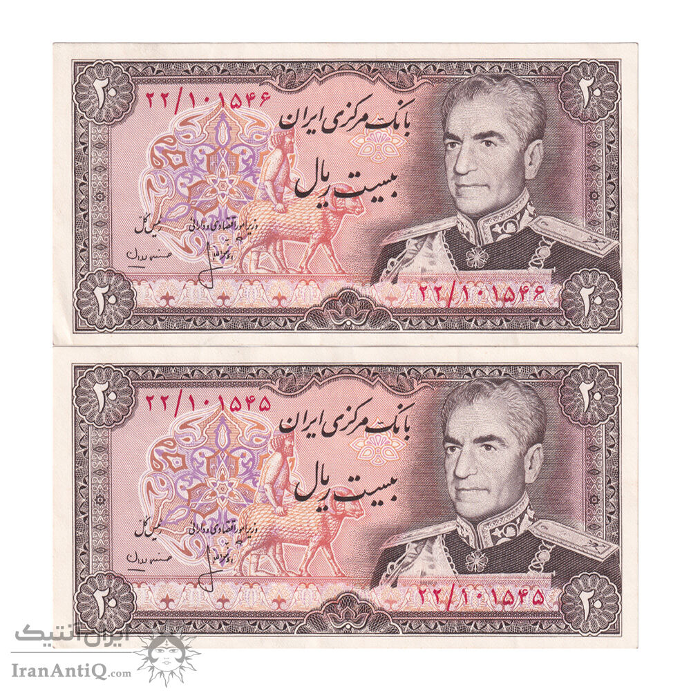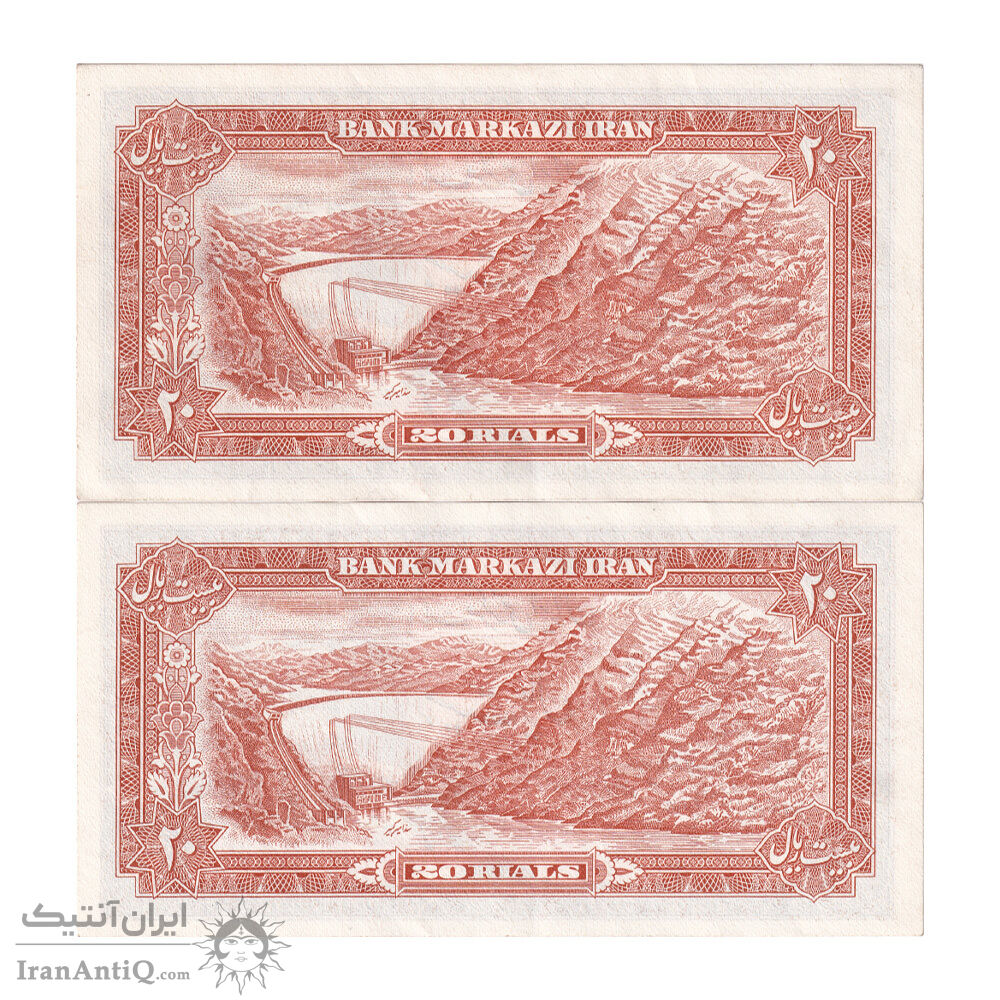 اسکناس 20 ریال (انصاری - مهران) ریال بسته - جفت - AU53 - محمد رضا شاه