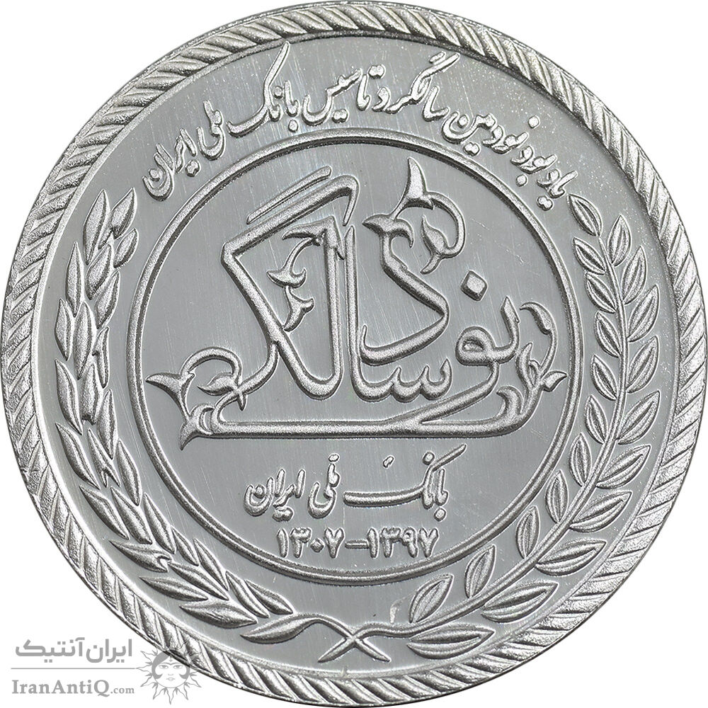 مدال نقره یادبود نودمین سالگرد تاسیس بانک ملی ایران - برنامه بام - PF66 - جمهوری اسلامی