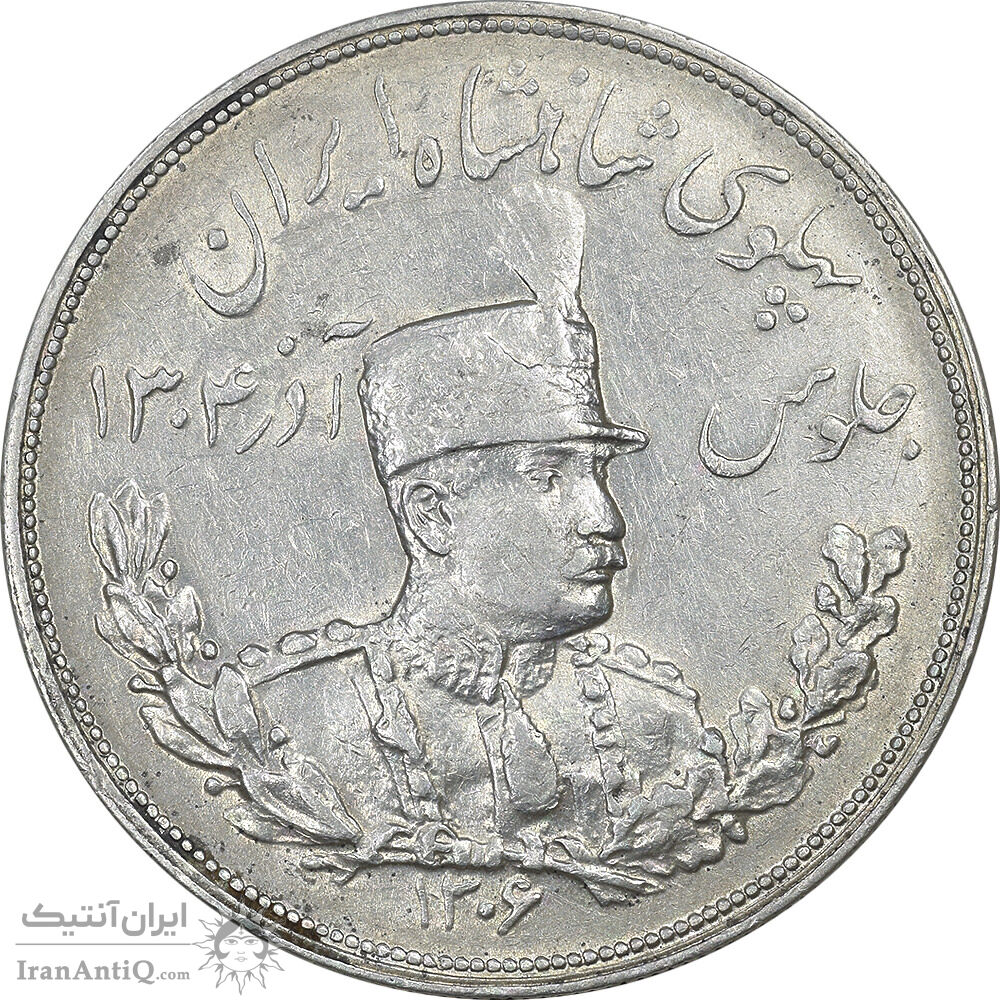 سکه 5000 دینار 1306 تصویری - ضرب هیتون - AU55 - رضا شاه