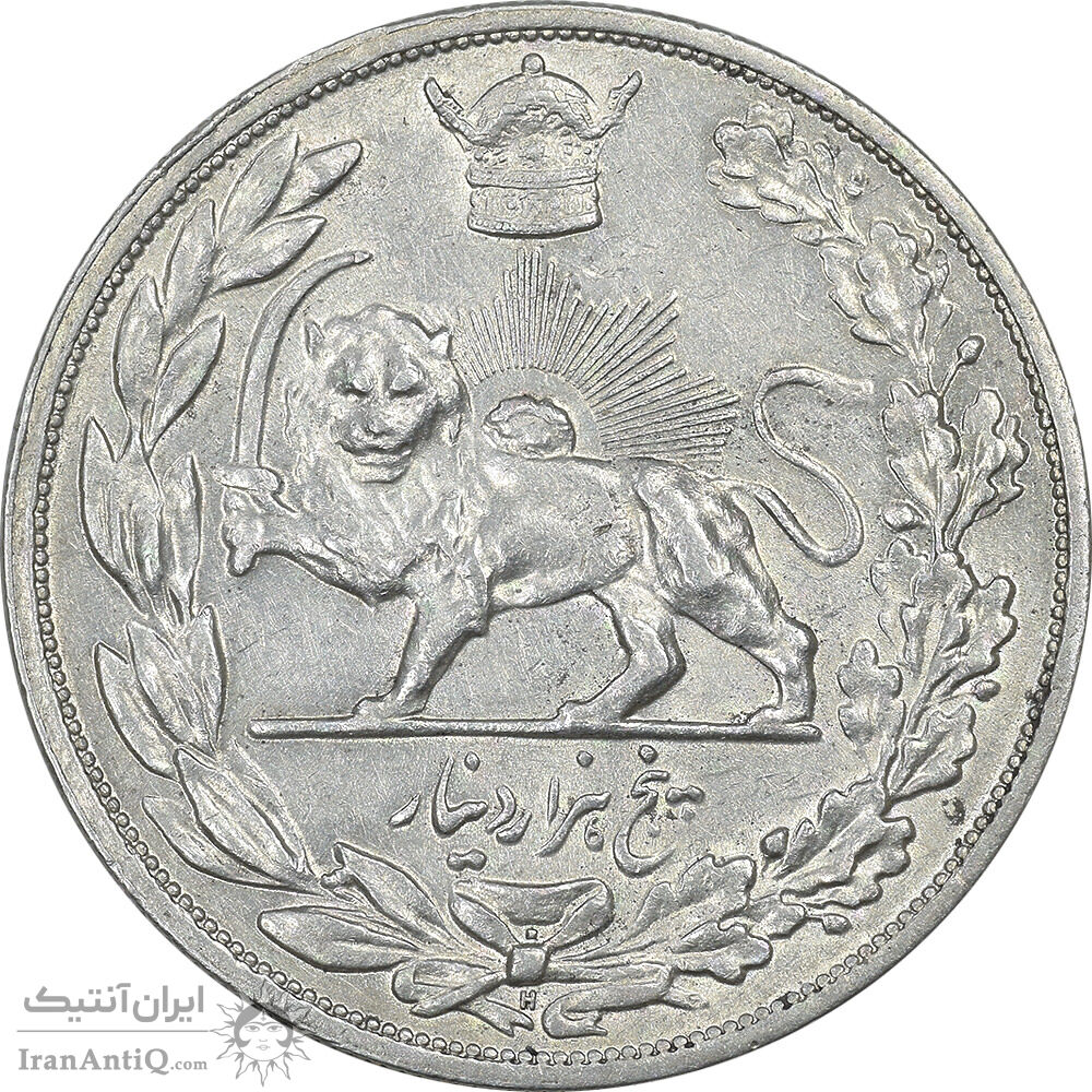 Iran 5000 dinars 1306H coin - AU55 - reza Shah pahlavi