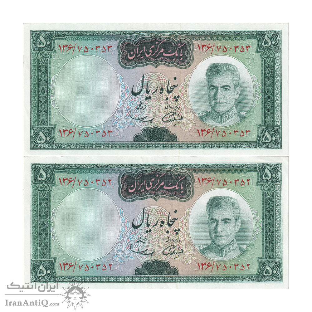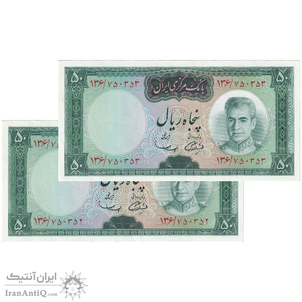 اسکناس 50 ریال (آموزگار - سمیعی) - جفت - AU - محمد رضا شاه