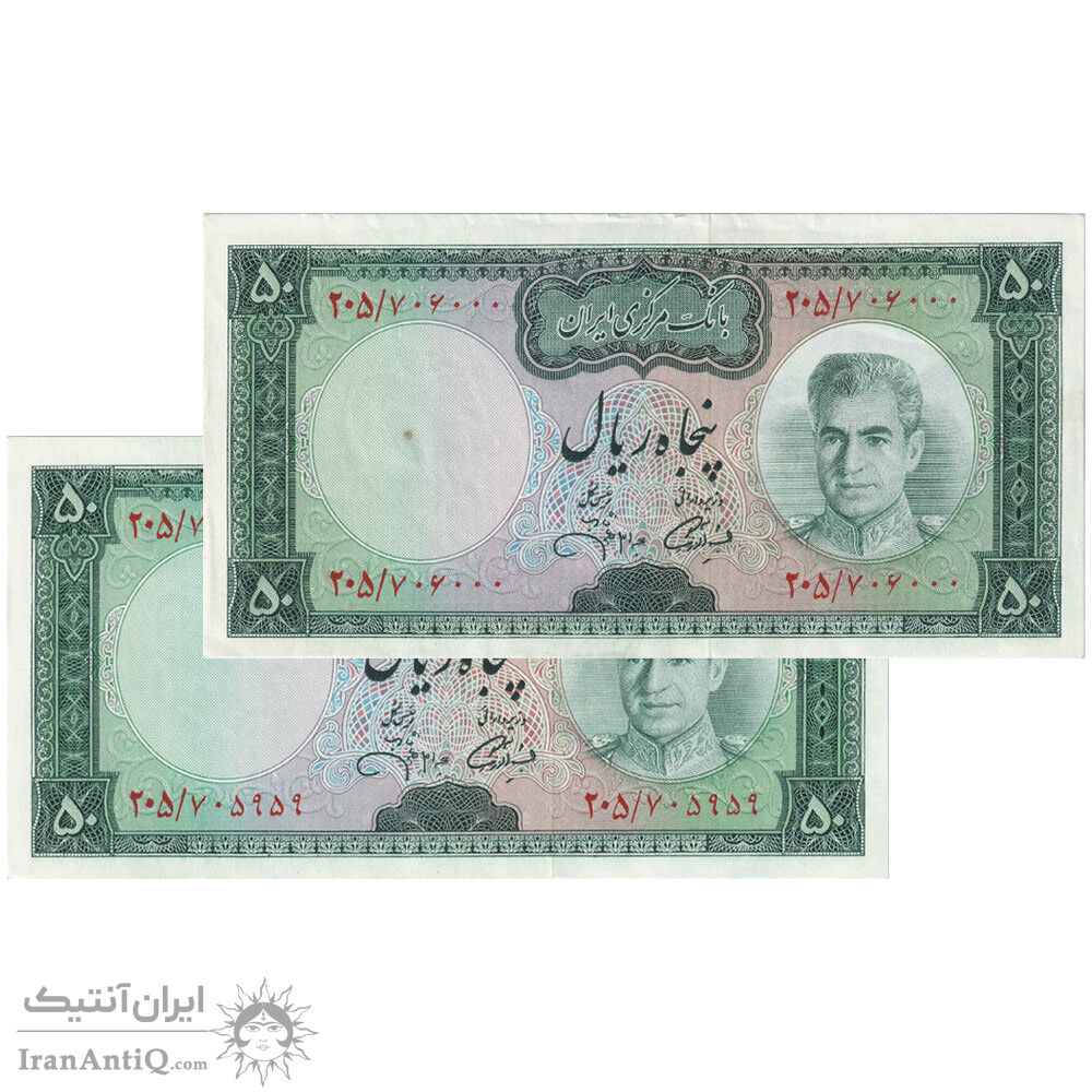 اسکناس 50 ریال (آموزگار - جهانشاهی) - جفت - محمد رضا شاه
