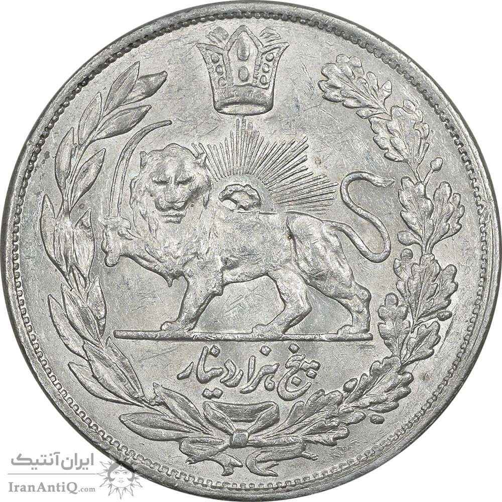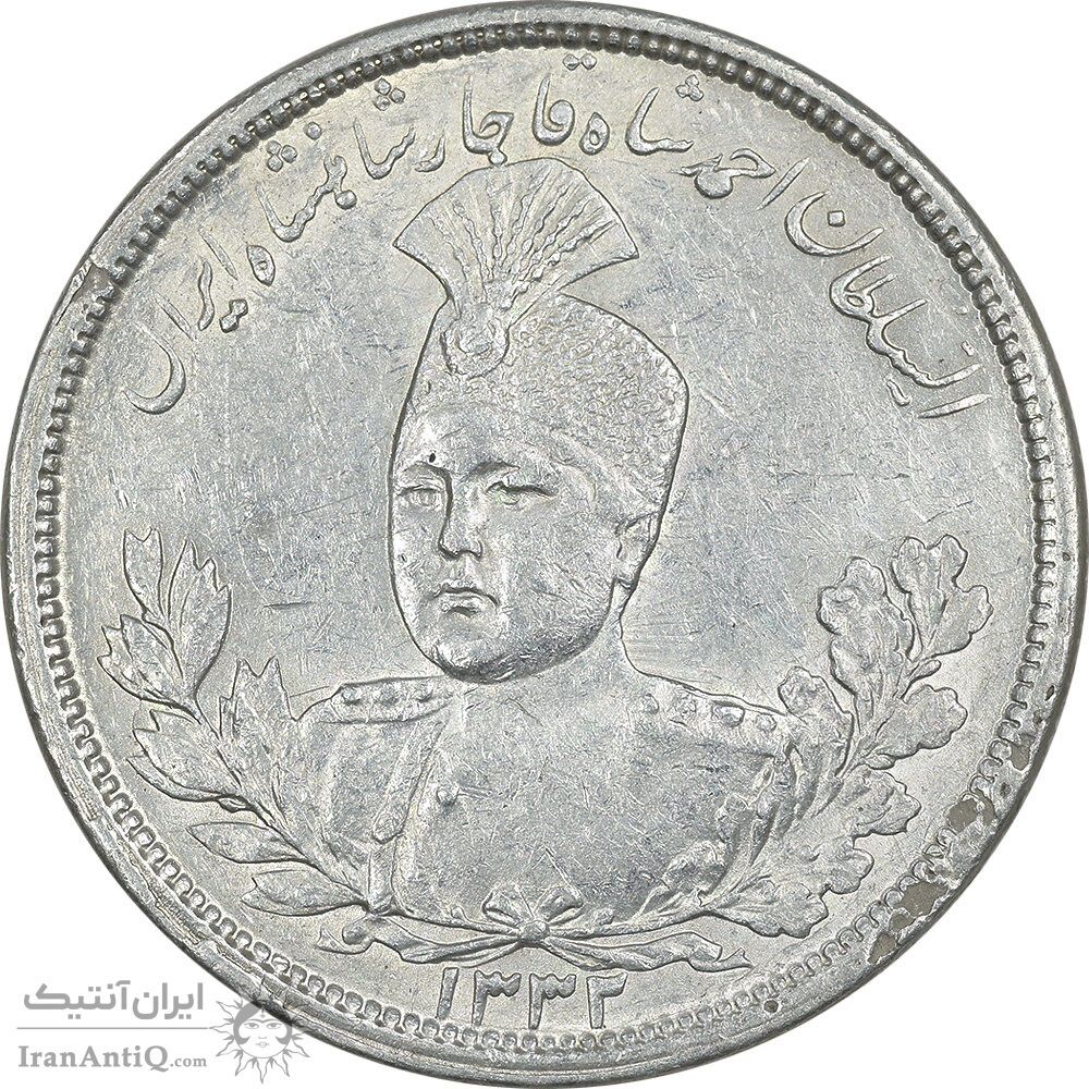 سکه 5000 دینار 1332 تصویری - AU55 - احمد شاه