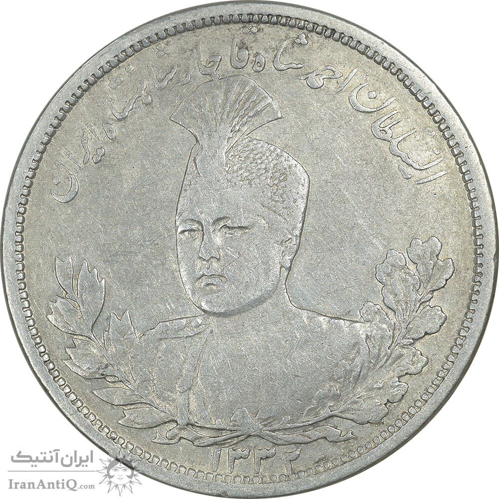 سکه 5000 دینار 1332 تصویری - EF45 - احمد شاه