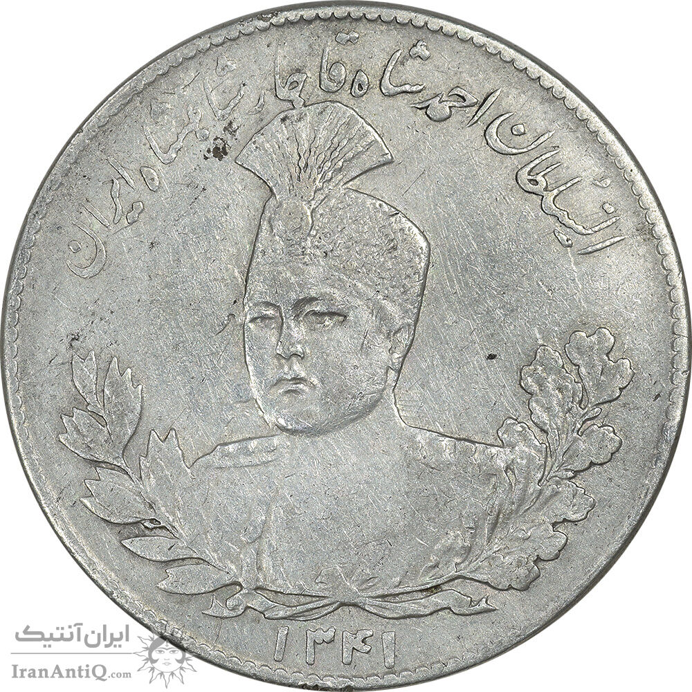 سکه 5000 دینار 1341 تصویری - بدون یقه - EF45 - احمد شاه