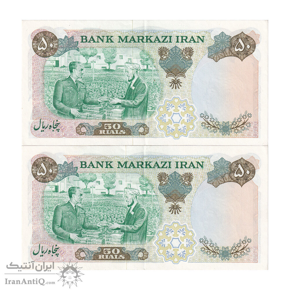اسکناس 50 ریال 1350 (آموزگار - سمیعی) - جفت - AU53 - محمد رضا شاه