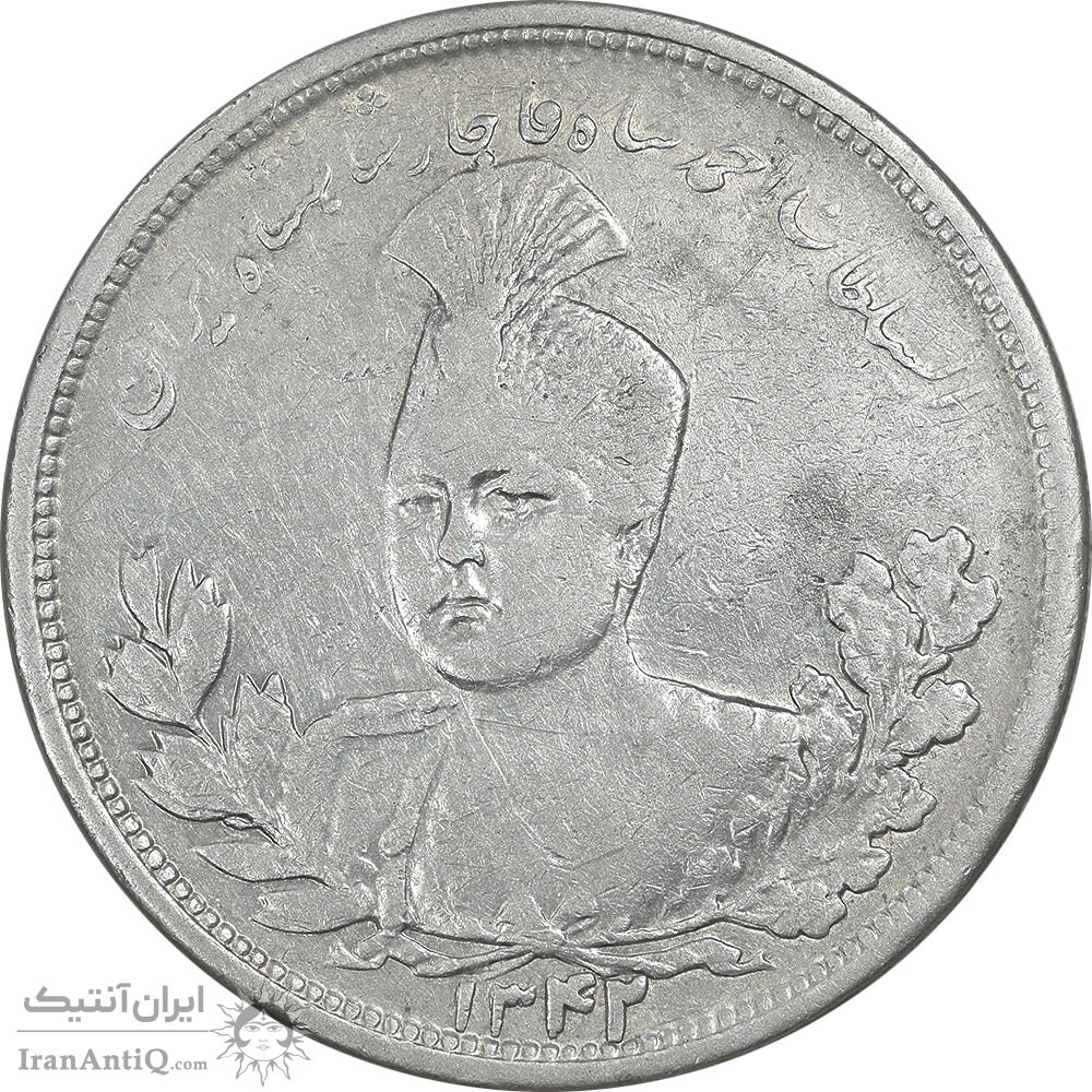 سکه 5000 دینار 1342 تصویری - بدون یقه - EF45 - احمد شاه