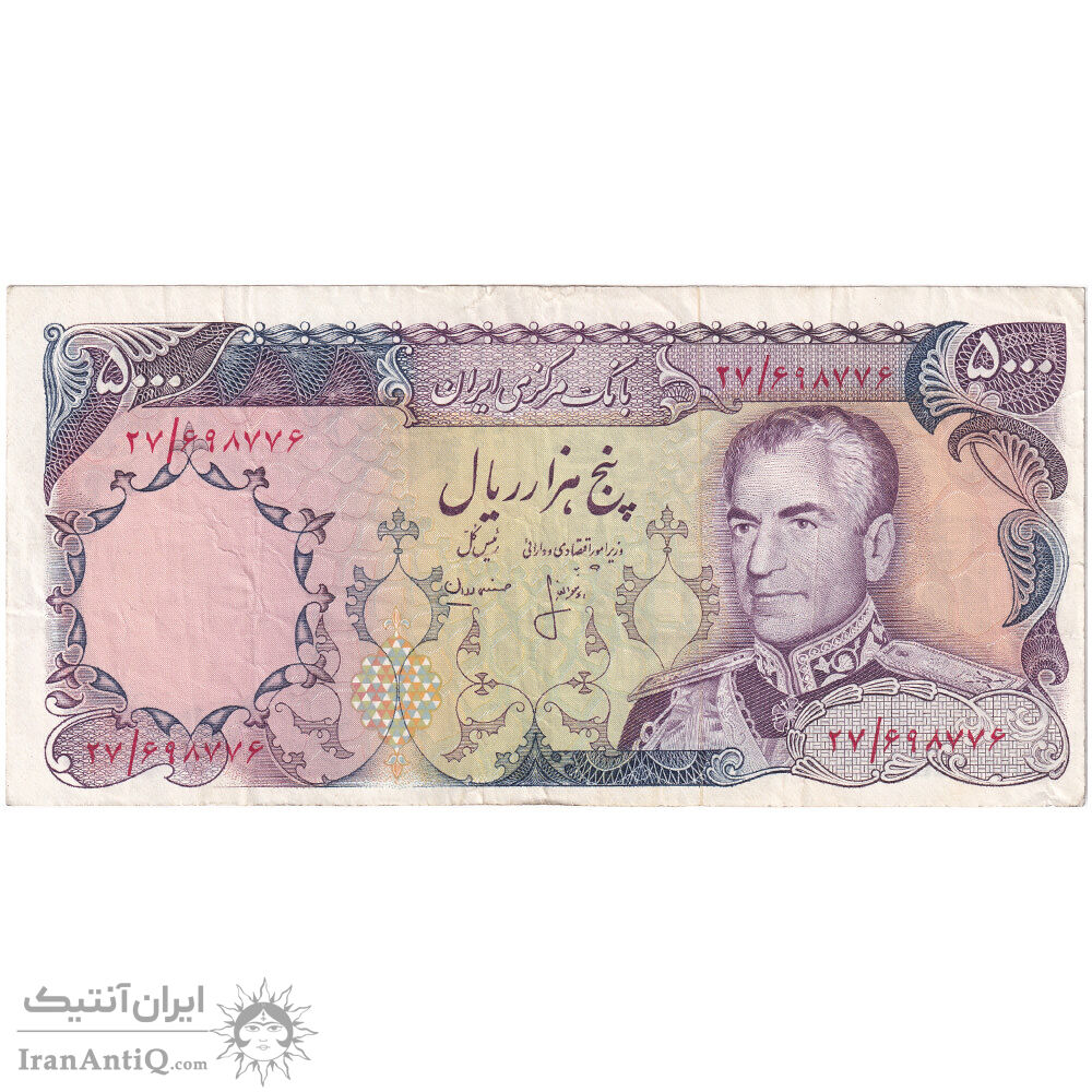 اسکناس 5000 ریال (انصاری - مهران) ارور کادر - تک - EF40 - محمد رضا شاه
