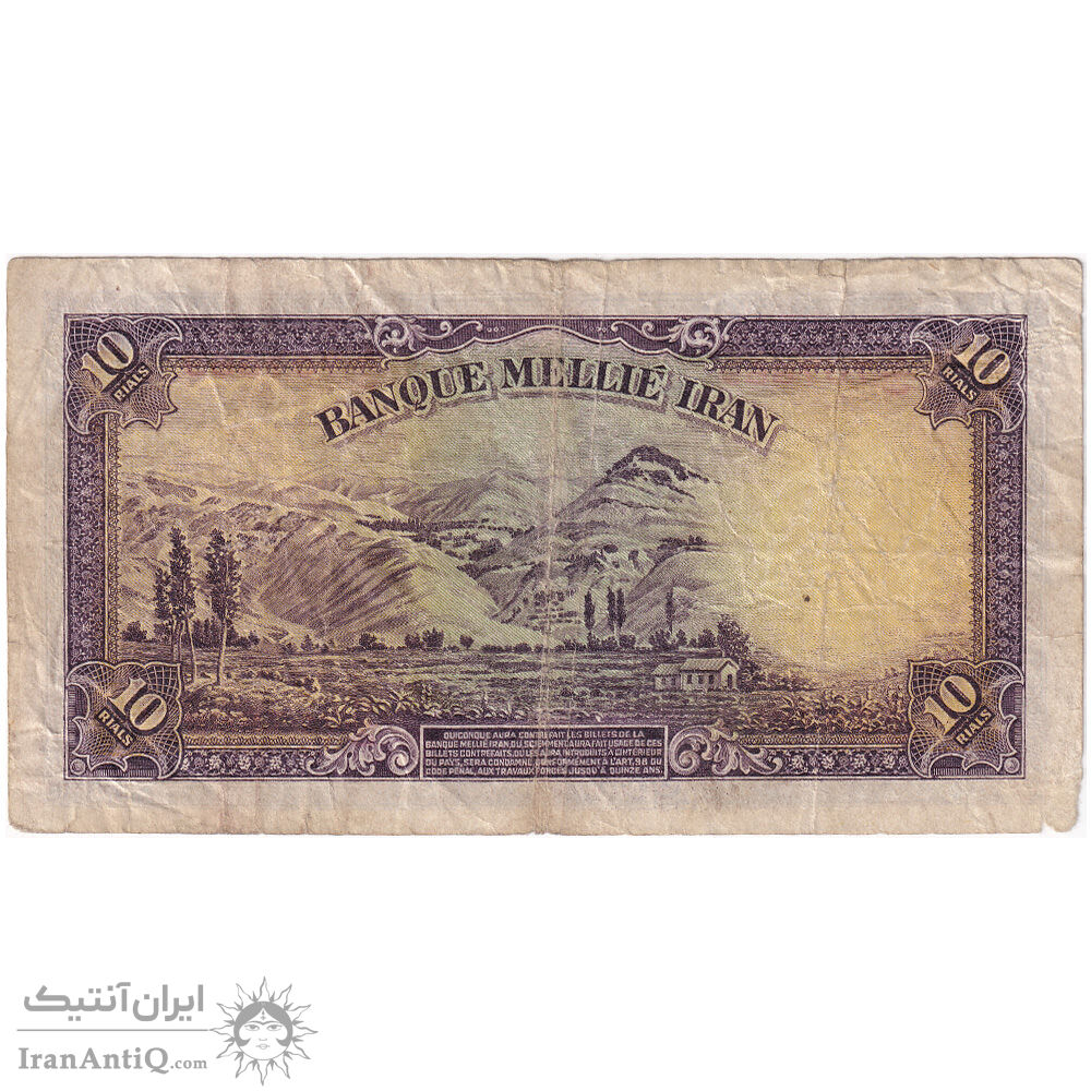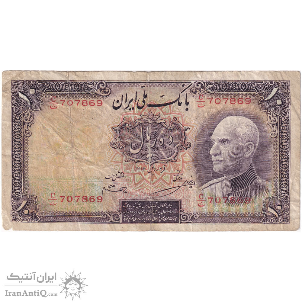 اسکناس 10 ریال پشت لاتین 1316 (بدون مهر) - تک - VF25 - رضا شاه