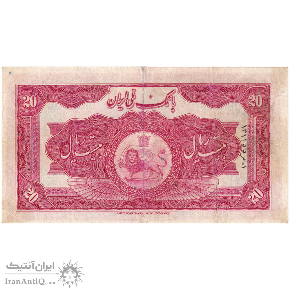 اسکناس 20 ریال کلاه کوچک - تک - F15 - رضا شاه