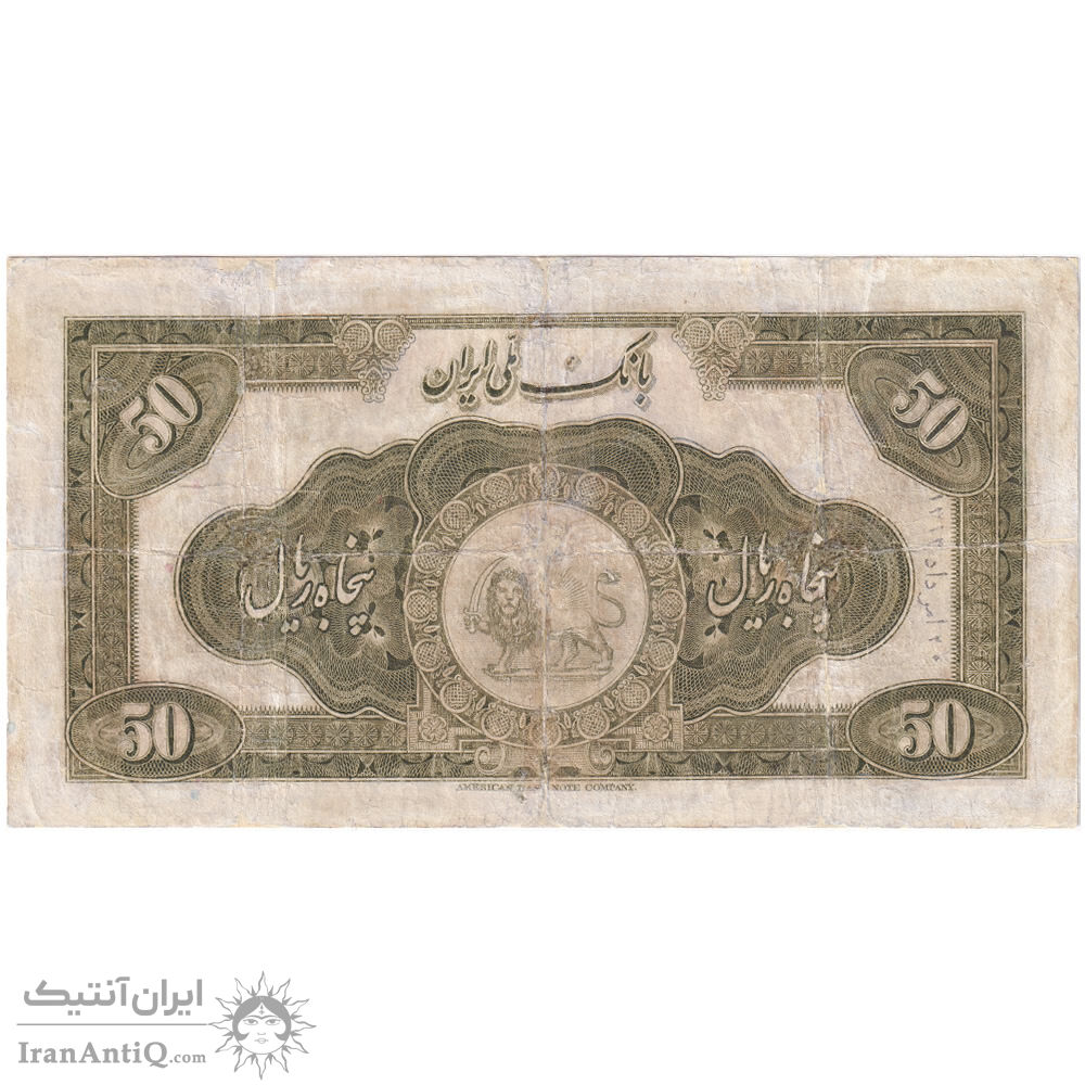 اسکناس 50 ریال کلاه بزرگ (هژیر - اعلا) - تک - G - رضا شاه
