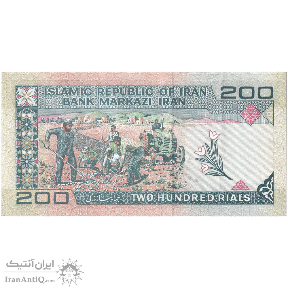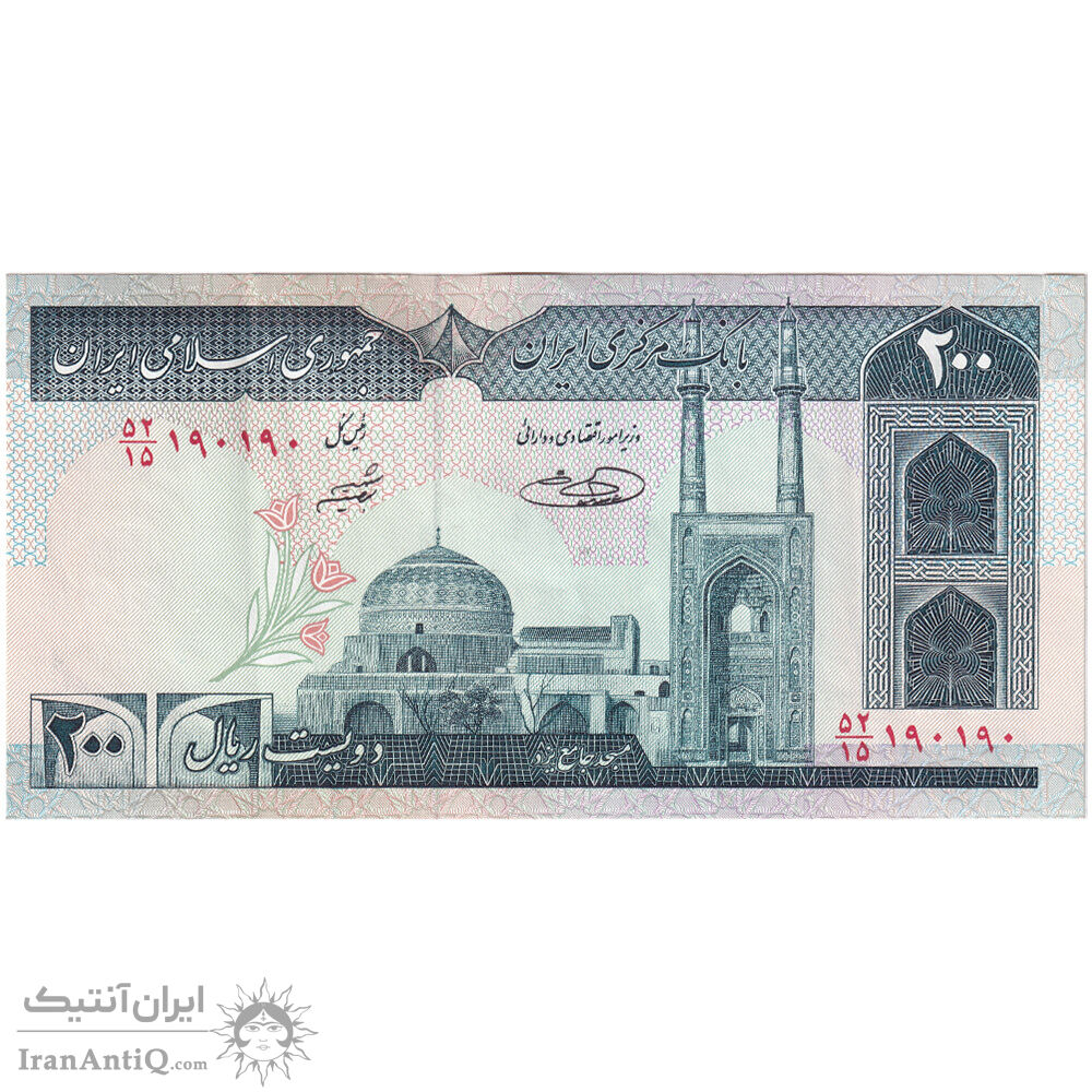اسکناس 200 ریال (شیبانی - حسینی) - نخ نستعلیق - شماره دوقلو - تک - EF45 - جمهوری اسلامی