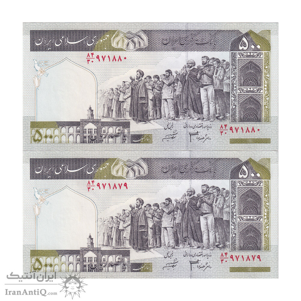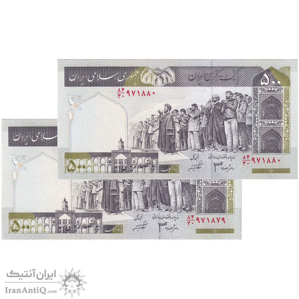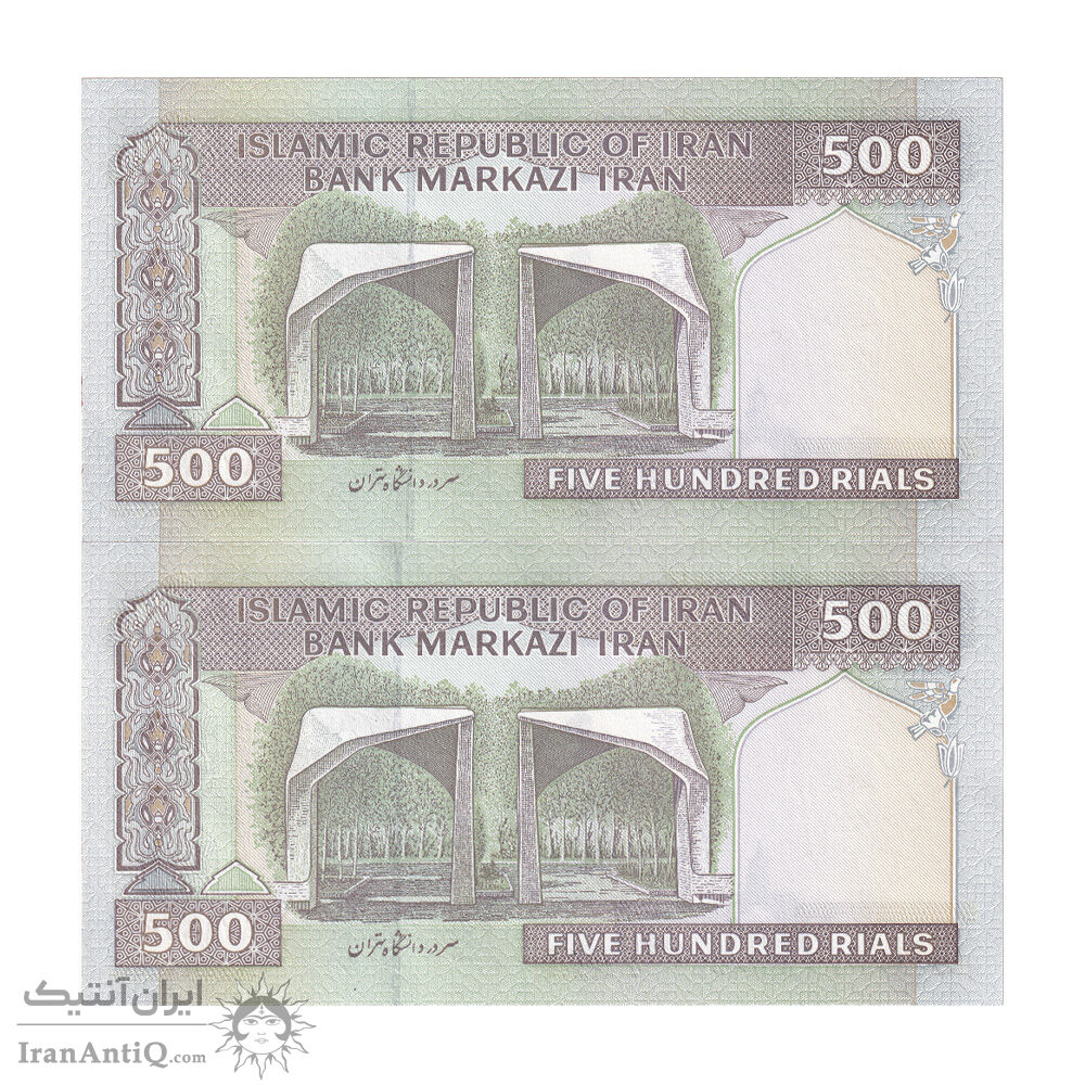 اسکناس 500 ریال (جعفری - شیبانی) شماره بزرگ - جفت - UNC62 - جمهوری اسلامی