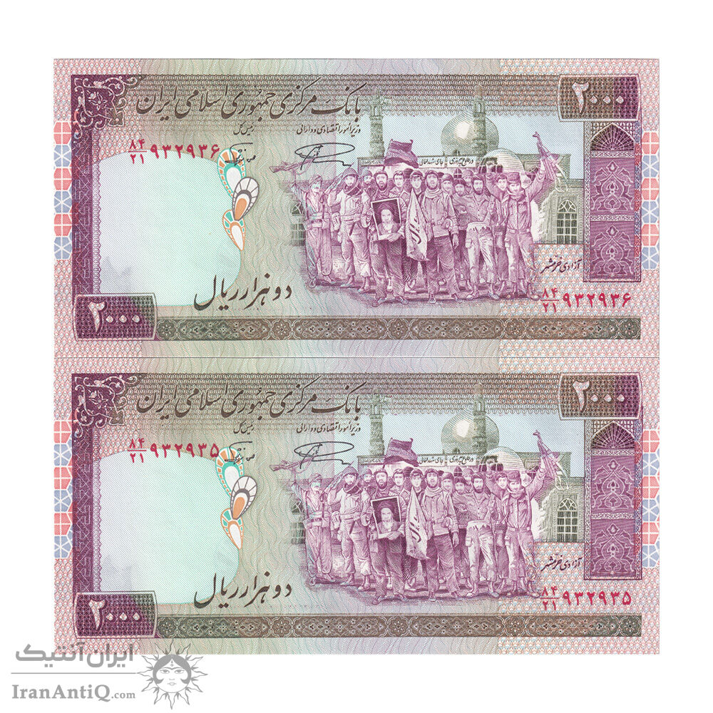 اسکناس 2000 ریال (نمازی - نوربخش) فیلیگران امام - جفت - AU58 - جمهوری اسلامی