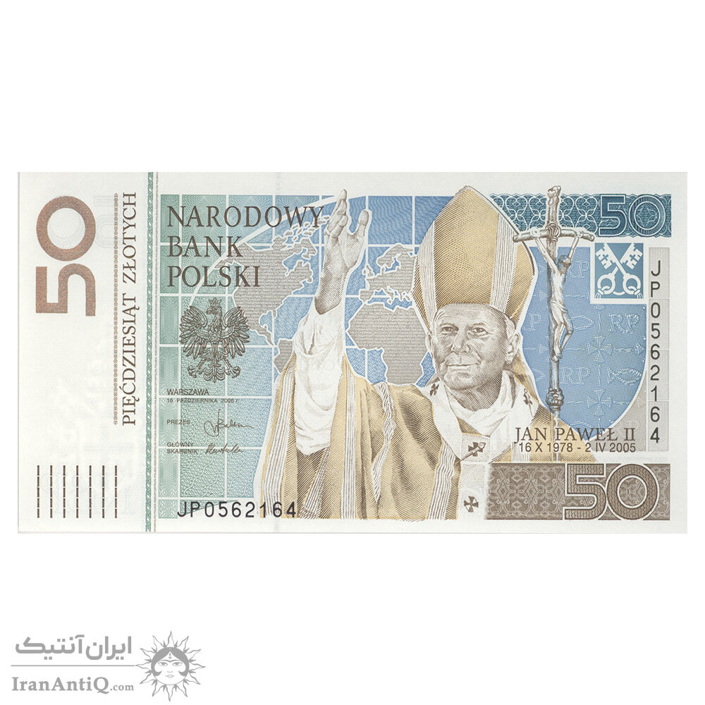 اسکناس 50 زلوتی 2006 جمهوری سوم - سالگرد انتخاب ژان پل دوم به مقام پاپی - تک - UNC62 - لهستان