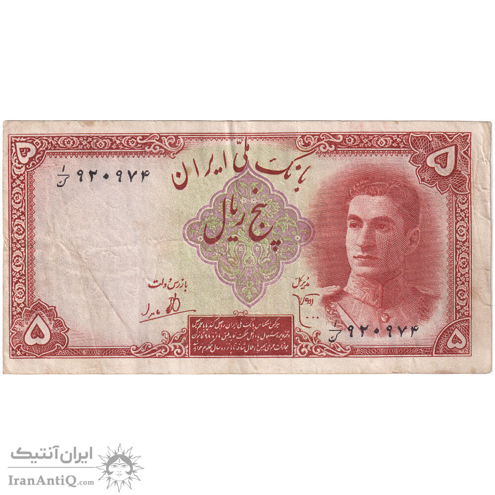 اسکناس 5 ریال - ارور کادر - تک - VF30 - محمد رضا شاه