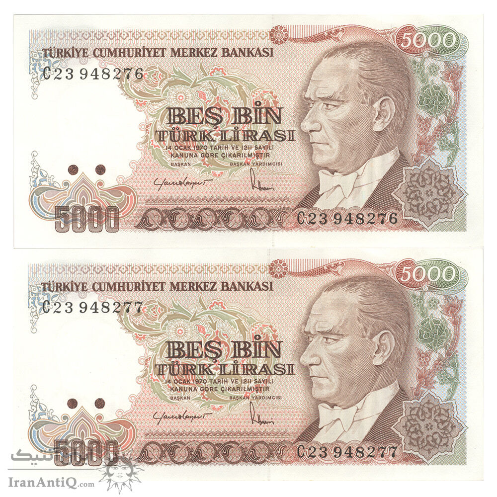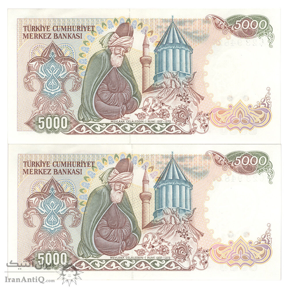 اسکناس 5000 لیره بدون تاریخ (1985) سری دوم جمهوری - جفت - UNC62 - ترکیه