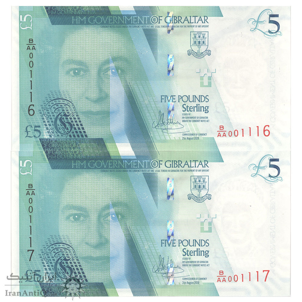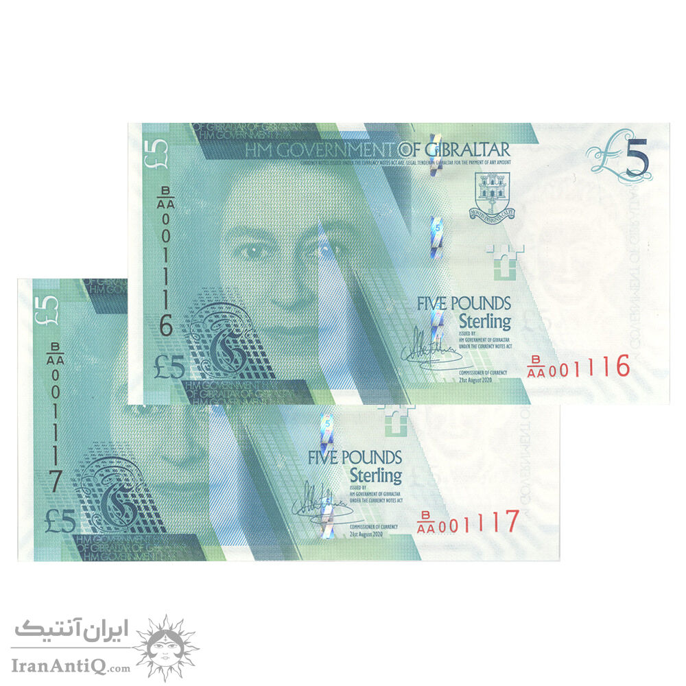 اسکناس 5 پوند 2020 الیزابت دوم - جفت - UNC64 - جبل الطارق
