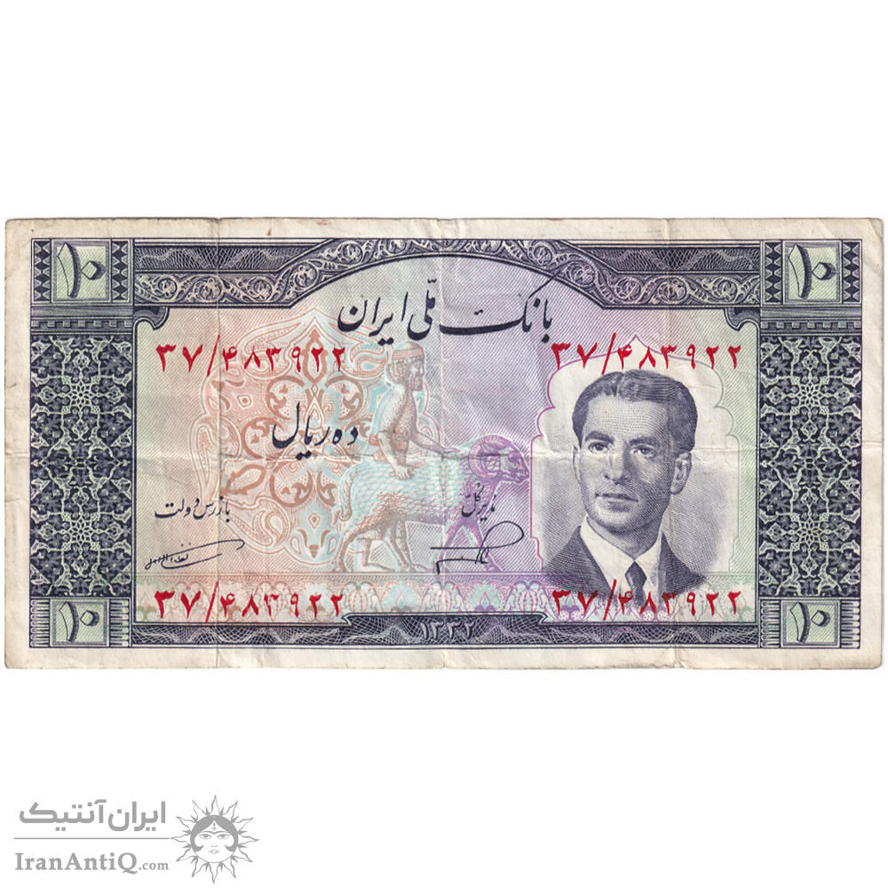 اسکناس 10 ریال 1332 - تک - VF30 - محمد رضا شاه