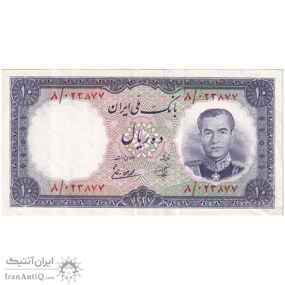 اسکناس 10 ریال 1337 - تک - AU50 - محمد رضا شاه