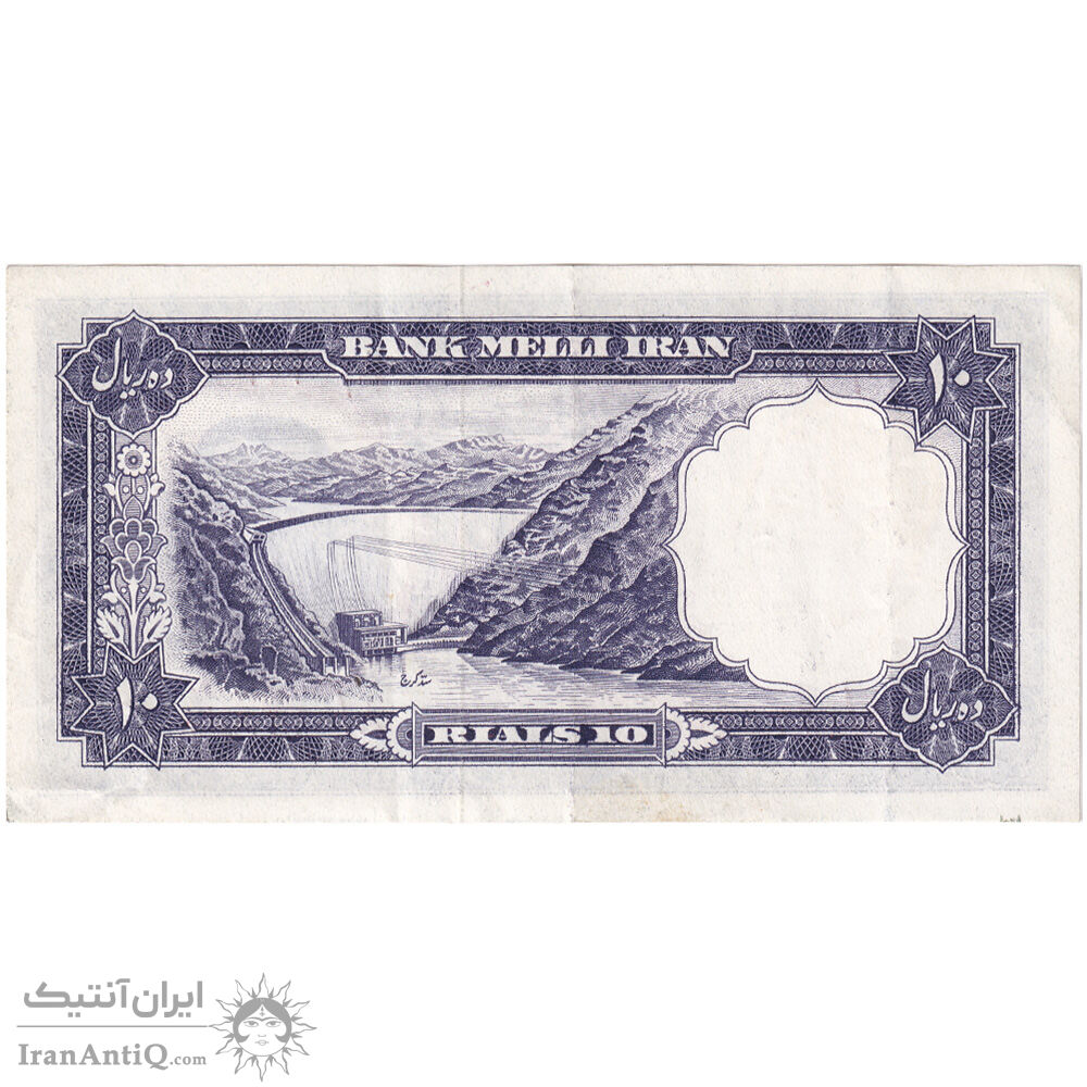 mohammad reza shah 10 rials 1337 iran banknote - AU50