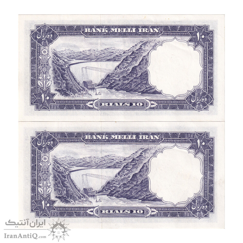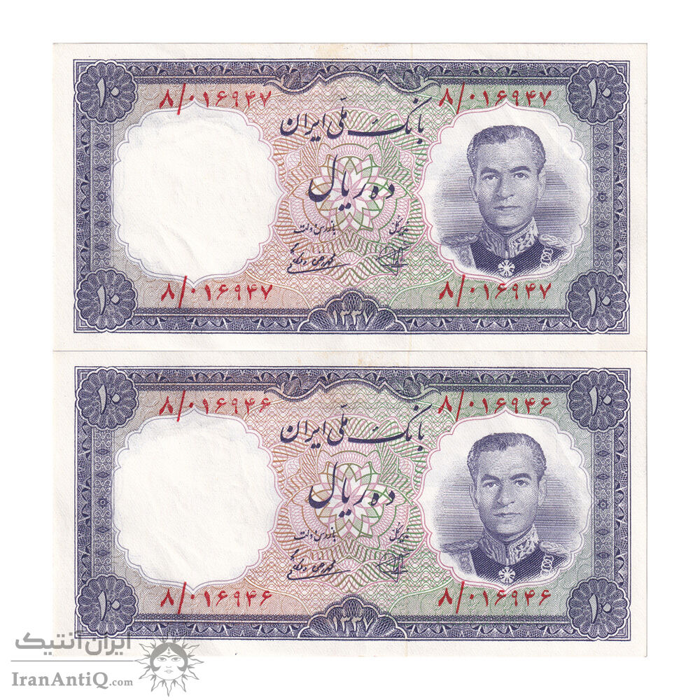 اسکناس 10 ریال 1337 - جفت - AU55 - محمد رضا شاه