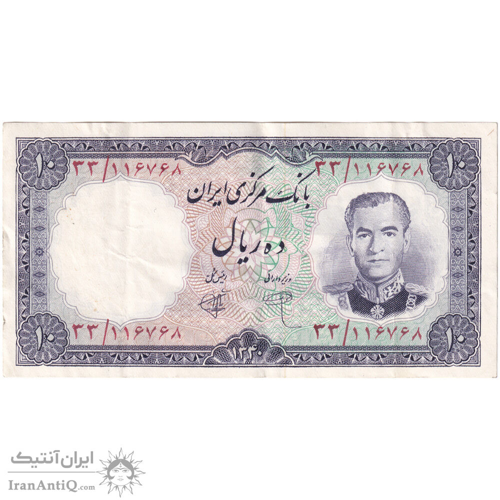 اسکناس 10 ریال 1340 - شماره سیاه - تک - EF45 - محمد رضا شاه