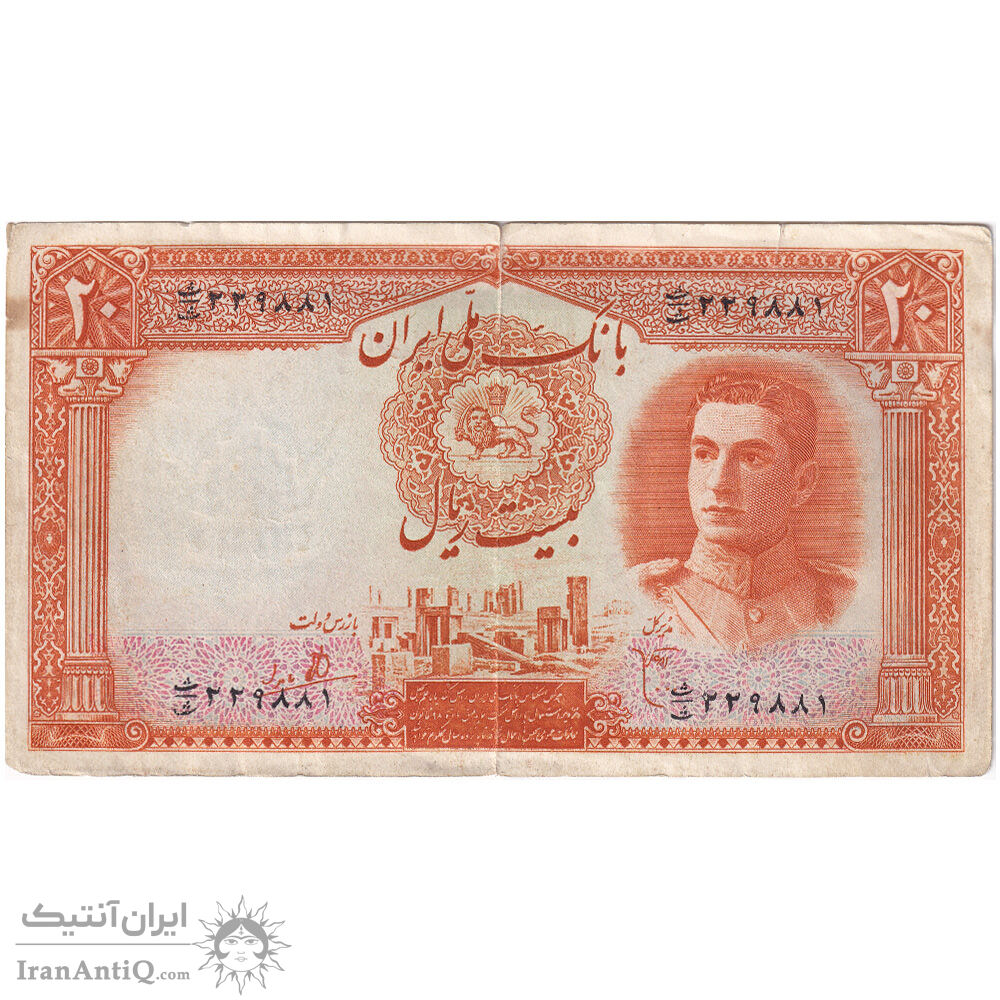 اسکناس 20 ریال سری اول - تک - VF30 - محمد رضا شاه