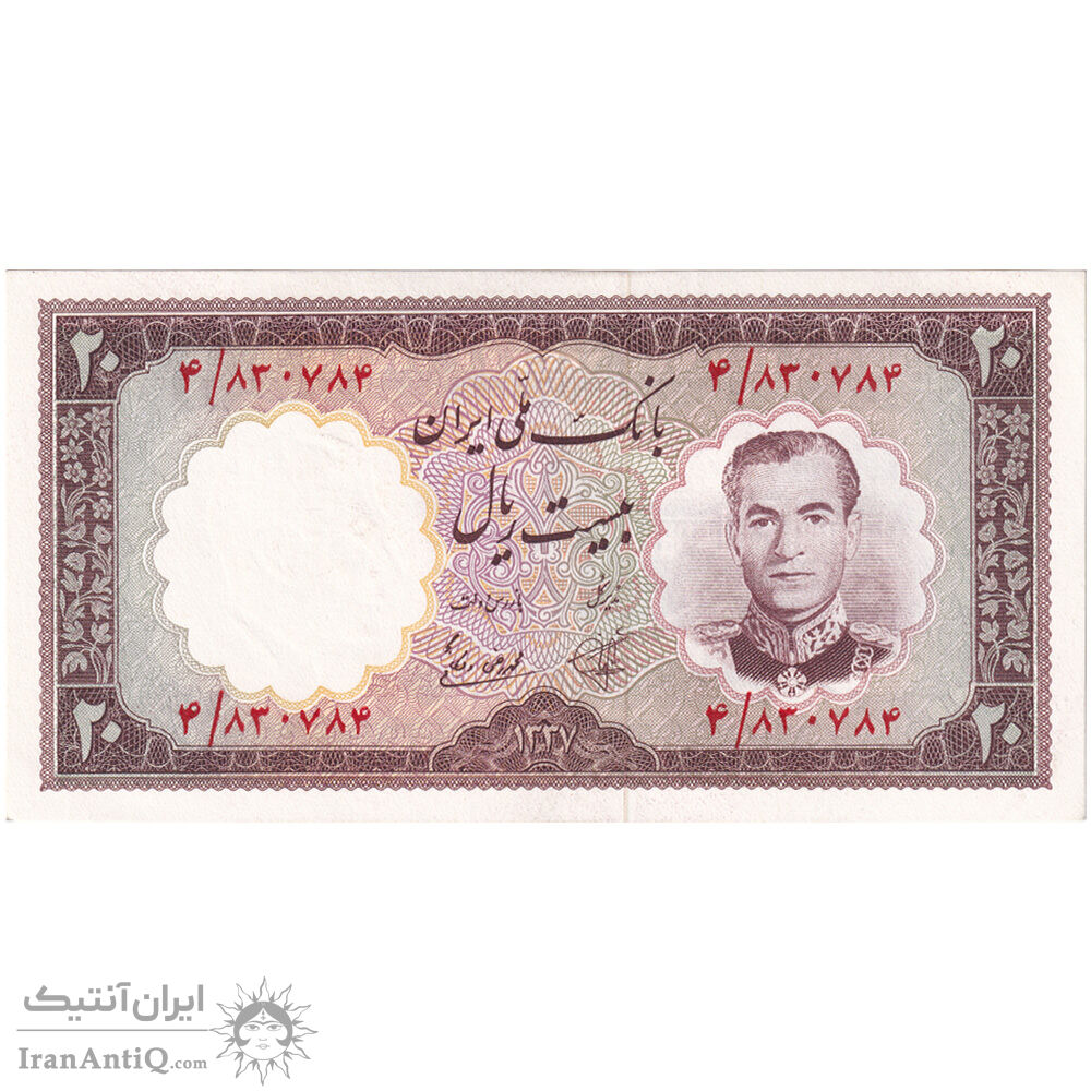 اسکناس 20 ریال 1337 - تک - UNC63 - محمد رضا شاه
