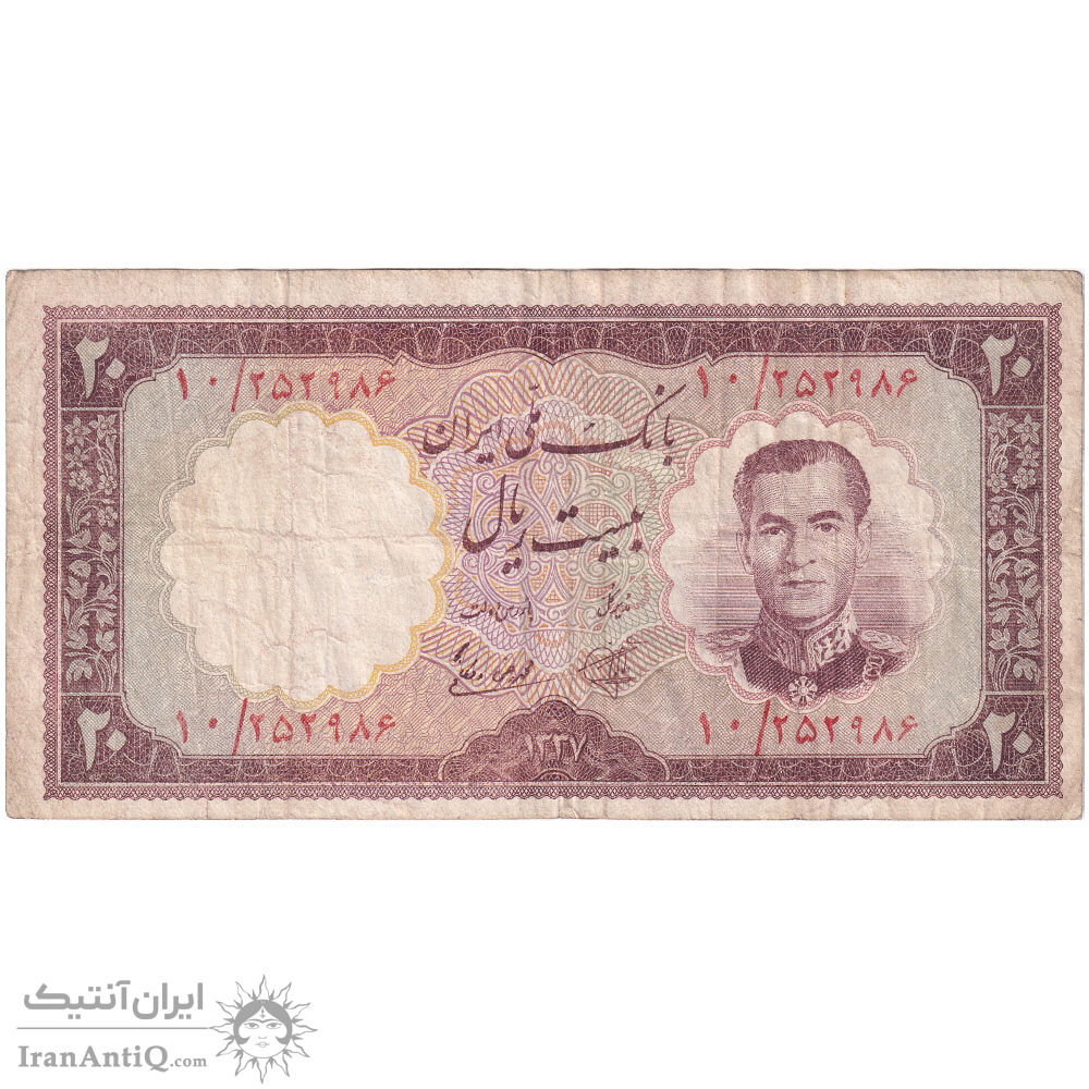 اسکناس 20 ریال 1337 - تک - VF25 - محمد رضا شاه