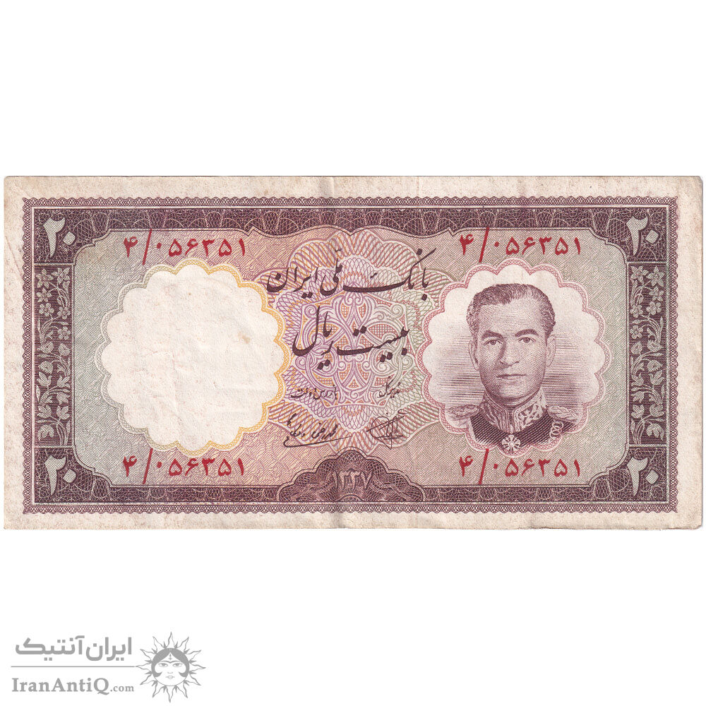 اسکناس 20 ریال 1337 - تک - EF40 - محمد رضا شاه