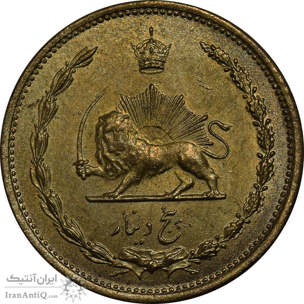 سکه 5 دینار 1319 برنز - MS62 - رضا شاه