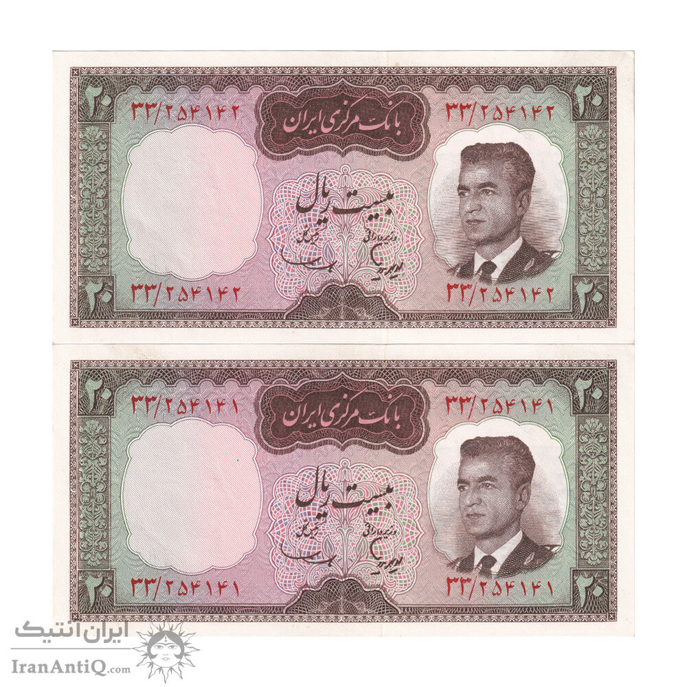 اسکناس 20 ریال (هویدا - سمیعی) - جفت - UNC63 - محمد رضا شاه