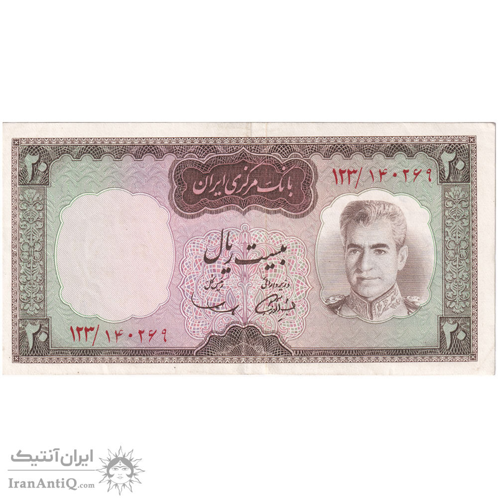 اسکناس 20 ریال (آموزگار - سمیعی) - تک - AU53 - محمد رضا شاه