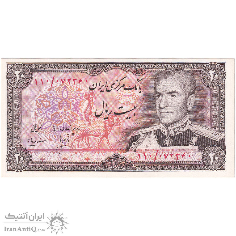 اسکناس 20 ریال (انصاری - مهران) ریال باز - تک - UNC64 - محمد رضا شاه