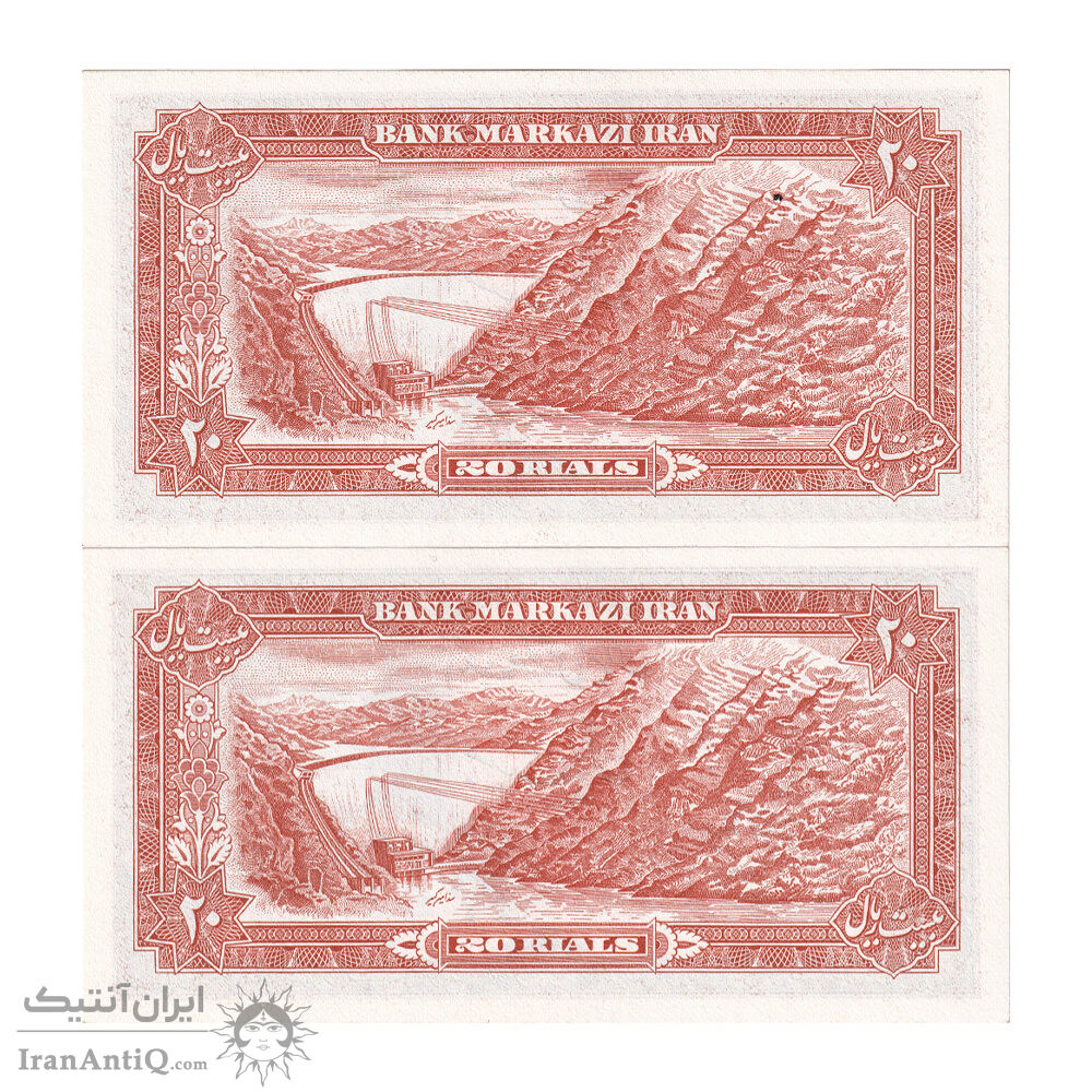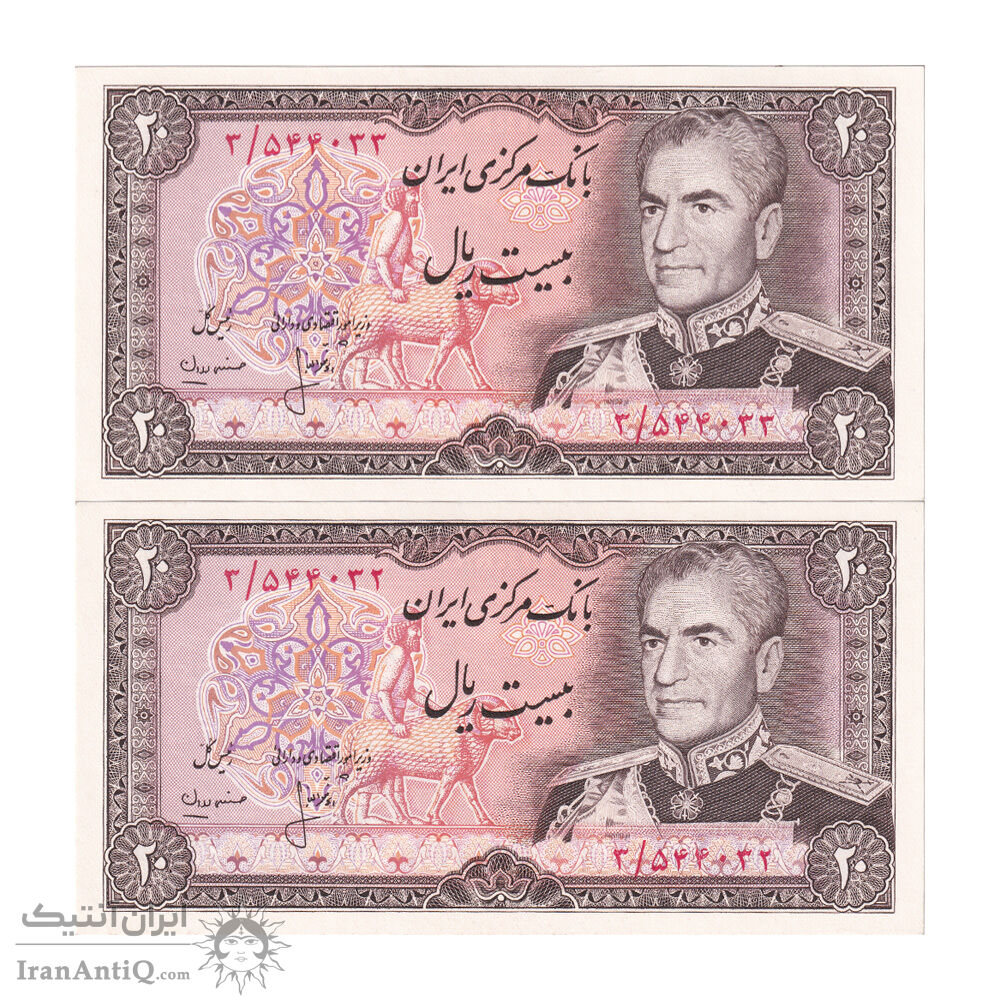 اسکناس 20 ریال (انصاری - مهران) ریال بسته - جفت - UNC64 - محمد رضا شاه