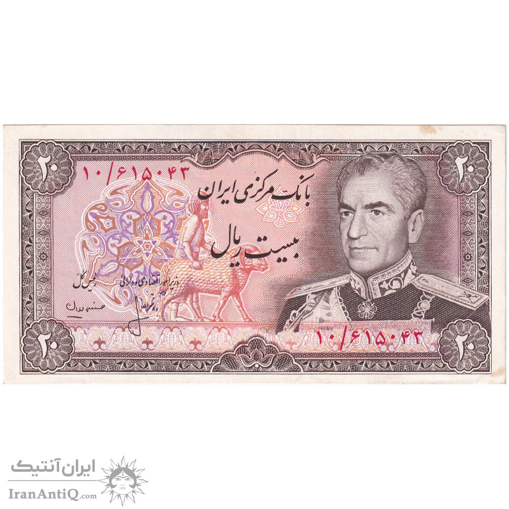 اسکناس 20 ریال (انصاری - مهران) ریال بسته - تک - AU53 - محمد رضا شاه