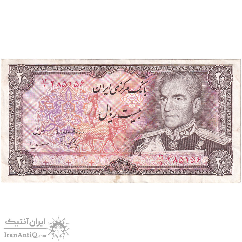 mohammad reza shah 20 rials (yegane - mehran) iran banknote - EF40