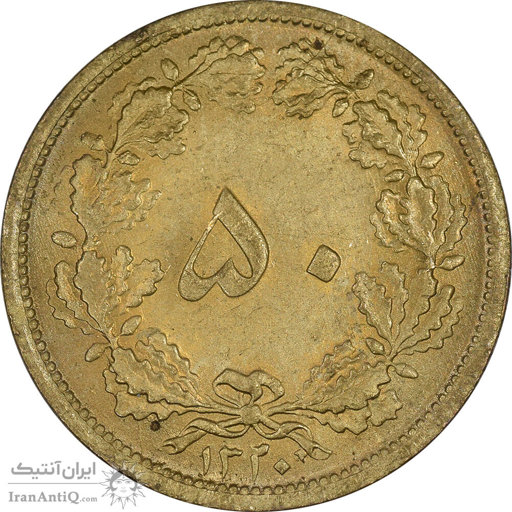 Iran 50 dinars 1320 coin - MS64 - reza shah pahlavi