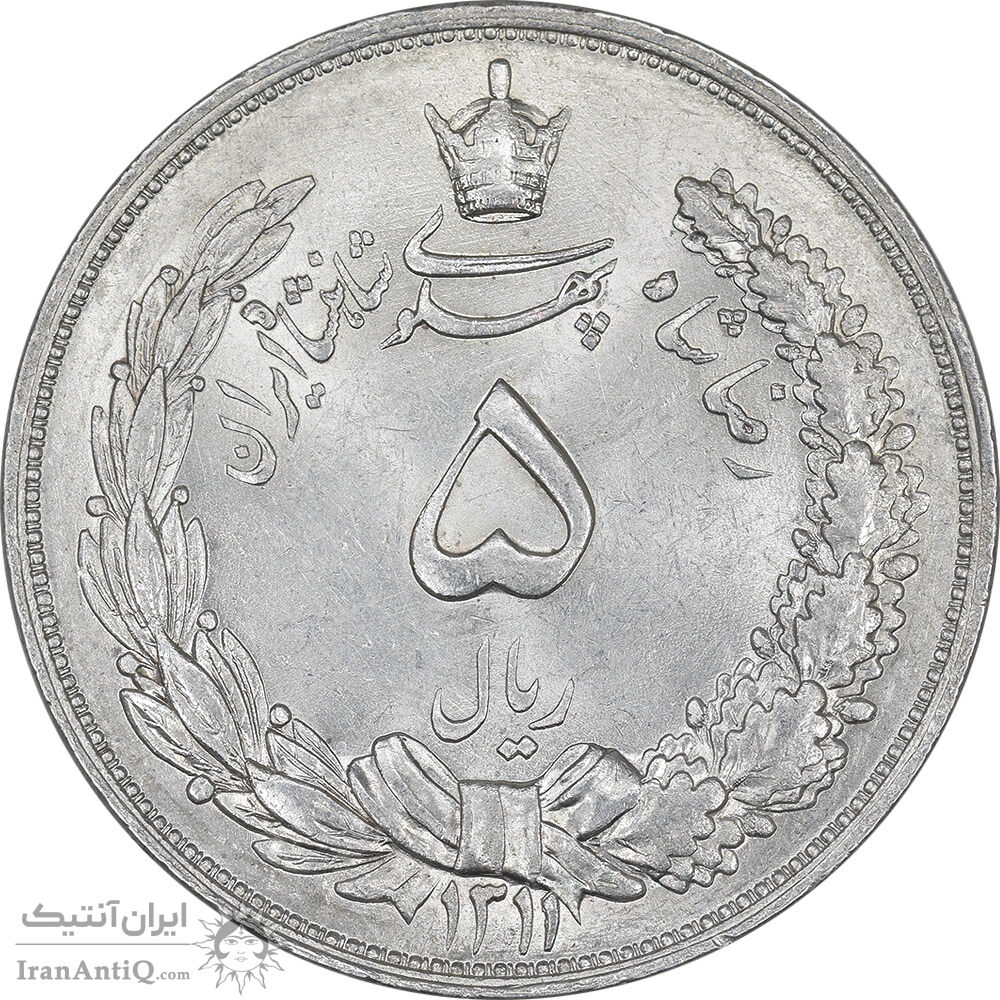 Iran 5 rials 1311 coin - MS62 - reza Shah pahlavi