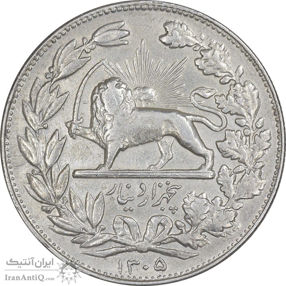 سکه 5000 دینار 1305 خطی - EF40 - رضا شاه