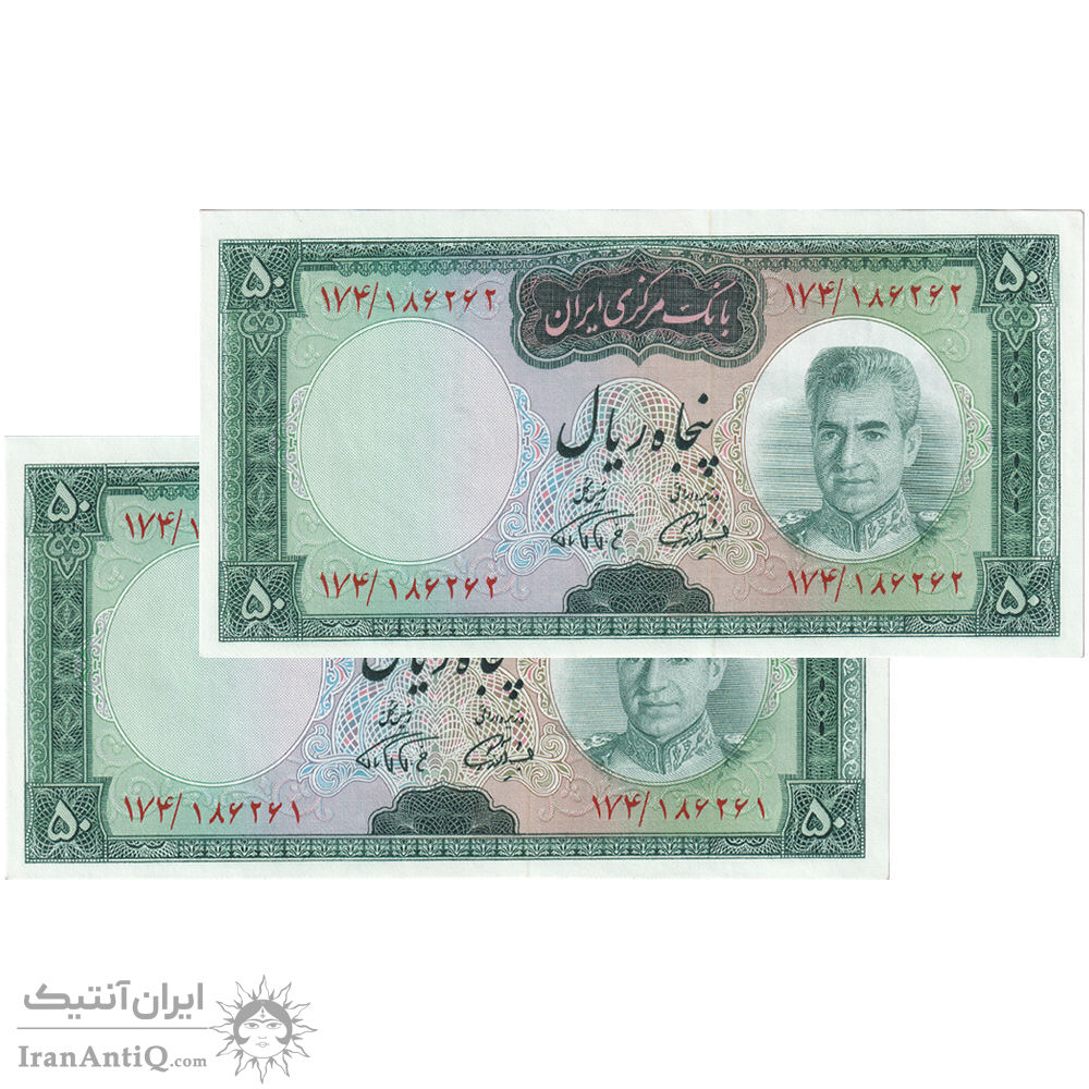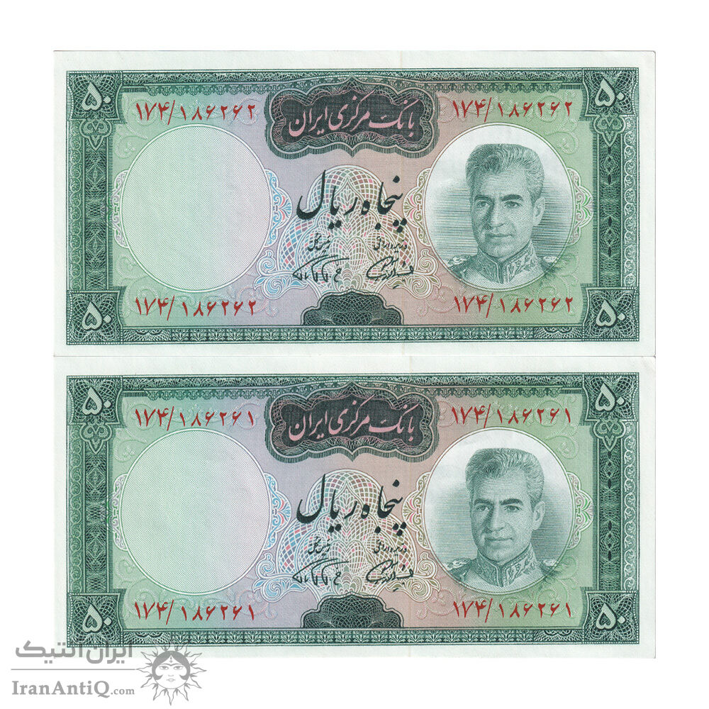 اسکناس 50 ریال (آموزگار - فرمان فرماییان) - جفت - UNC61 - محمد رضا شاه