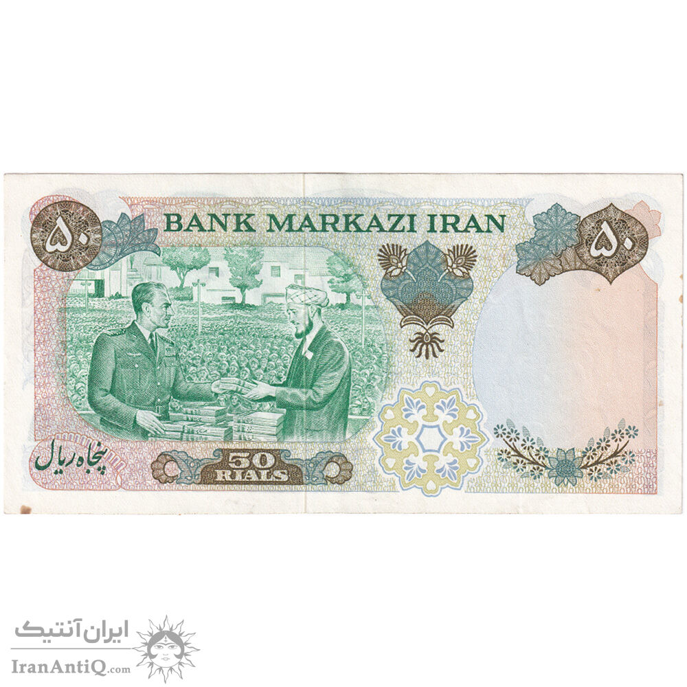 اسکناس 50 ریال 1350 (آموزگار - سمیعی) - تک - AU55 - محمد رضا شاه
