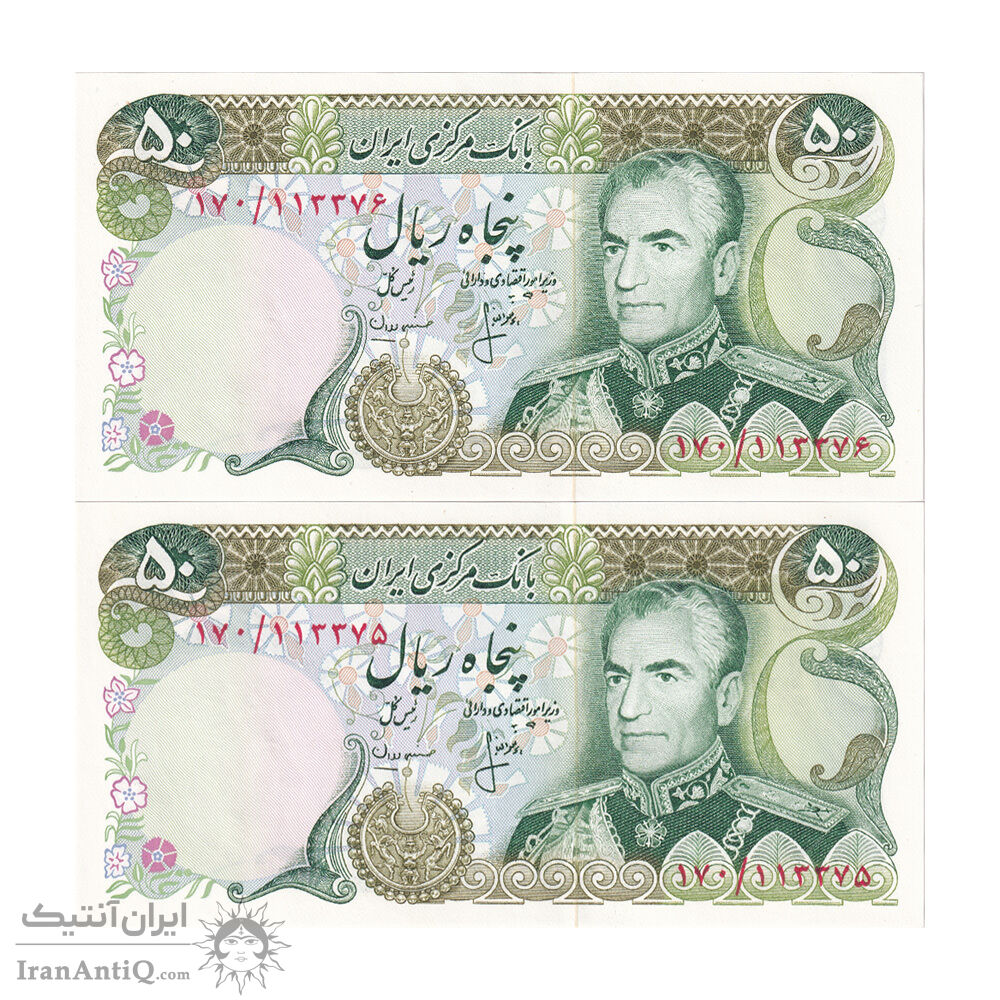 اسکناس 50 ریال (انصاری - مهران) - جفت - UNC64 - محمد رضا شاه