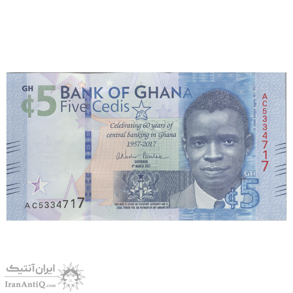 اسکناس 5 سدی 2017 جمهوری - شصتمین سالگرد تأسیس بانک مرکزی - تک - UNC63 - غنا
