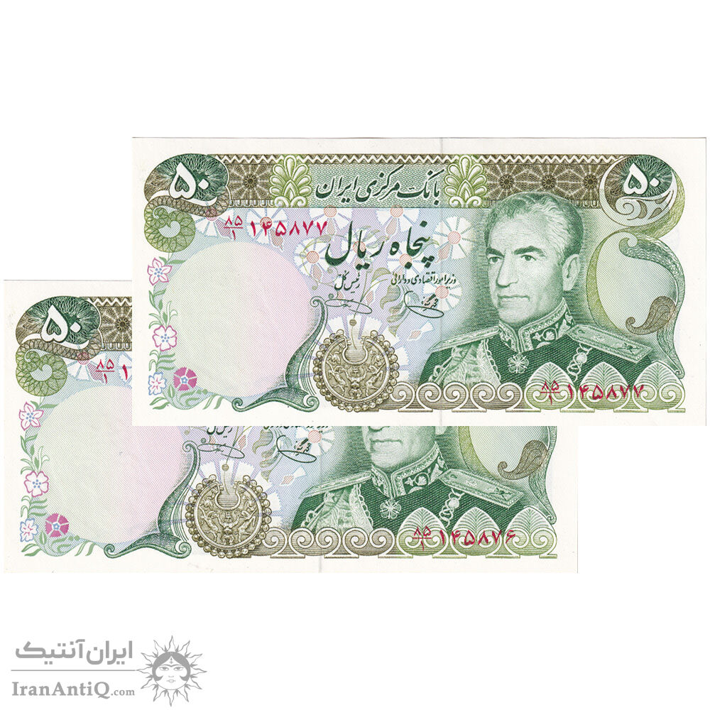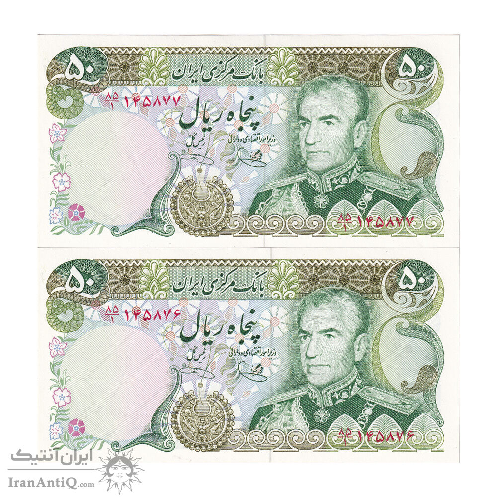 اسکناس 50 ریال (یگانه - خوش کیش) - جفت - UNC64 - محمد رضا شاه