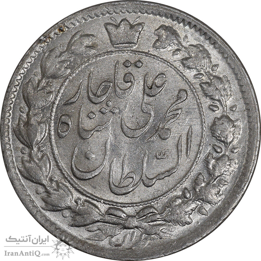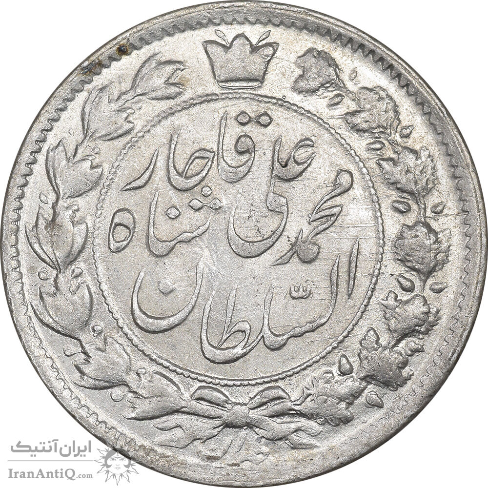 Iran 2 krans 1327 coin - rotate 100 degree - MS61 - Mohammad ali shah