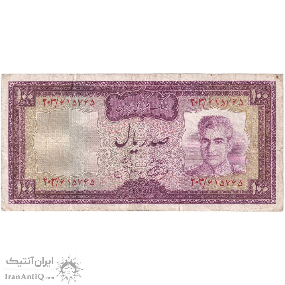 اسکناس 100 ریال (آموزگار - جهانشاهی) - تک - VF25 - محمد رضا شاه